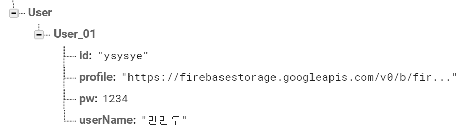 위와 같이 Realtime Database에 저장되어있는 정보를
