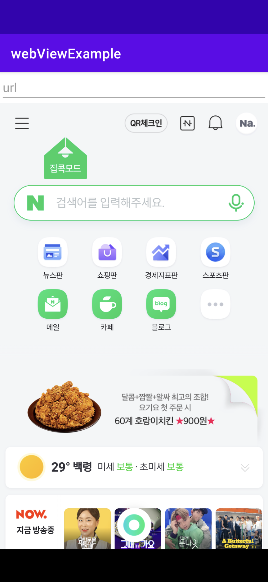 6- loadUrl을 이용해서 받아온 url의 웹페이지를 webView에 띄우도록 했다.