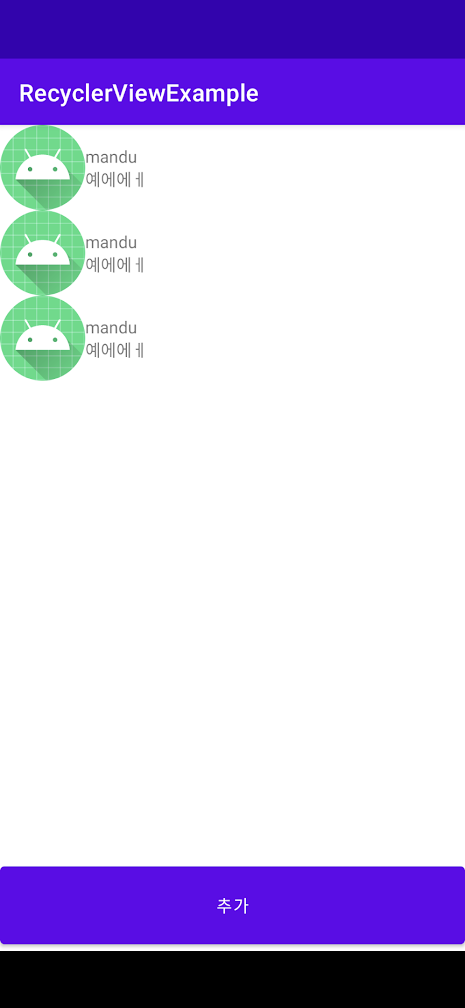MainData mainData = new MainData(R.mipmap.ic_launcher, "mandu", "예에에ㅔ"); //MainData의 형태로 정보를 저장
